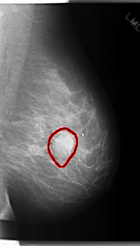 FILE: C_0273_1.LEFT_CC.OVERLAY TOTAL_ABNORMALITIES 1 ABNORMALITY 1 LESION_TYPE MASS SHAPE OVAL MARGINS CIRCUMSCRIBED ASSESSMENT 4 SUBTLETY 5 PATHOLOGY BENIGN TOTAL_OUTLINES 1 BOUNDARY |