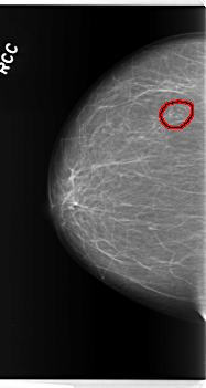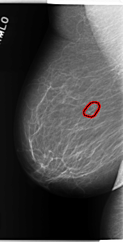 FILE: C_0276_1.RIGHT_MLO.OVERLAY TOTAL_ABNORMALITIES 1 ABNORMALITY 1 LESION_TYPE CALCIFICATION TYPE PLEOMORPHIC DISTRIBUTION CLUSTERED ASSESSMENT 4 SUBTLETY 5 PATHOLOGY BENIGN TOTAL_OUTLINES 1 BOUNDARY |