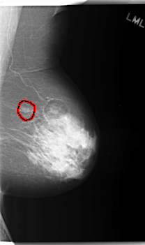 FILE: C_0281_1.LEFT_MLO.OVERLAY TOTAL_ABNORMALITIES 1 ABNORMALITY 1 LESION_TYPE CALCIFICATION TYPE PLEOMORPHIC DISTRIBUTION CLUSTERED ASSESSMENT 4 SUBTLETY 4 PATHOLOGY BENIGN TOTAL_OUTLINES 1 BOUNDARY |