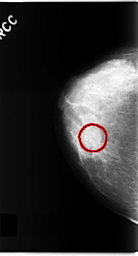 FILE: C_0284_1.RIGHT_CC.OVERLAY TOTAL_ABNORMALITIES 1 ABNORMALITY 1 LESION_TYPE MASS SHAPE ROUND MARGINS OBSCURED ASSESSMENT 3 SUBTLETY 4 PATHOLOGY BENIGN TOTAL_OUTLINES 1 BOUNDARY |
