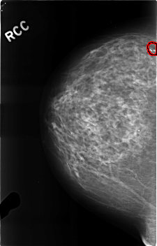 FILE: C_0310_1.RIGHT_CC.OVERLAY TOTAL_ABNORMALITIES 1 ABNORMALITY 1 LESION_TYPE CALCIFICATION TYPE PLEOMORPHIC DISTRIBUTION CLUSTERED ASSESSMENT 3 SUBTLETY 5 PATHOLOGY BENIGN TOTAL_OUTLINES 1 BOUNDARY |