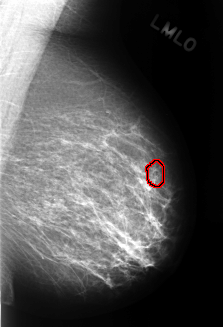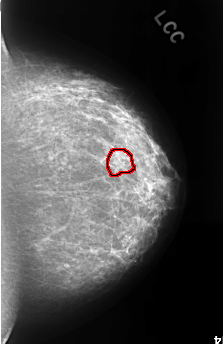 FILE: C_0328_1.LEFT_CC.OVERLAY TOTAL_ABNORMALITIES 1 ABNORMALITY 1 LESION_TYPE CALCIFICATION TYPE PLEOMORPHIC DISTRIBUTION CLUSTERED ASSESSMENT 4 SUBTLETY 4 PATHOLOGY BENIGN TOTAL_OUTLINES 1 BOUNDARY |