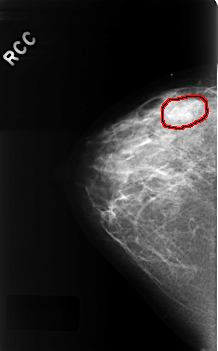 FILE: C_0330_1.RIGHT_CC.OVERLAY TOTAL_ABNORMALITIES 1 ABNORMALITY 1 LESION_TYPE MASS SHAPE LOBULATED MARGINS OBSCURED ASSESSMENT 3 SUBTLETY 2 PATHOLOGY BENIGN TOTAL_OUTLINES 1 BOUNDARY |
