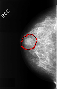 FILE: C_0333_1.RIGHT_CC.OVERLAY TOTAL_ABNORMALITIES 1 ABNORMALITY 1 LESION_TYPE MASS SHAPE OVAL MARGINS CIRCUMSCRIBED ASSESSMENT 4 SUBTLETY 4 PATHOLOGY BENIGN TOTAL_OUTLINES 1 BOUNDARY |