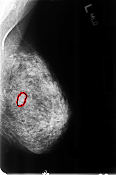 FILE: B_3357_1.LEFT_MLO.OVERLAY TOTAL_ABNORMALITIES 1 ABNORMALITY 1 LESION_TYPE MASS SHAPE OVAL MARGINS CIRCUMSCRIBED-OBSCURED ASSESSMENT 4 SUBTLETY 2 PATHOLOGY BENIGN TOTAL_OUTLINES 1 BOUNDARY |