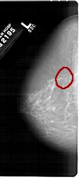 FILE: A_1370_1.LEFT_CC.OVERLAY TOTAL_ABNORMALITIES 1 ABNORMALITY 1 LESION_TYPE MASS SHAPE IRREGULAR MARGINS ILL_DEFINED ASSESSMENT 4 SUBTLETY 3 PATHOLOGY BENIGN TOTAL_OUTLINES 1 BOUNDARY |