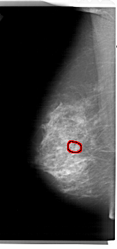 FILE: A_1461_1.LEFT_CC.OVERLAY TOTAL_ABNORMALITIES 1 ABNORMALITY 1 LESION_TYPE CALCIFICATION TYPE AMORPHOUS DISTRIBUTION CLUSTERED ASSESSMENT 4 SUBTLETY 4 PATHOLOGY BENIGN TOTAL_OUTLINES 1 BOUNDARY |