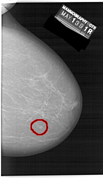 FILE: A_1471_1.RIGHT_MLO.OVERLAY TOTAL_ABNORMALITIES 1 ABNORMALITY 1 LESION_TYPE MASS SHAPE LOBULATED MARGINS CIRCUMSCRIBED ASSESSMENT 4 SUBTLETY 4 PATHOLOGY BENIGN TOTAL_OUTLINES 1 BOUNDARY |