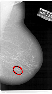 FILE: A_1471_1.RIGHT_CC.OVERLAY TOTAL_ABNORMALITIES 1 ABNORMALITY 1 LESION_TYPE MASS SHAPE LOBULATED MARGINS CIRCUMSCRIBED ASSESSMENT 4 SUBTLETY 4 PATHOLOGY BENIGN TOTAL_OUTLINES 1 BOUNDARY |