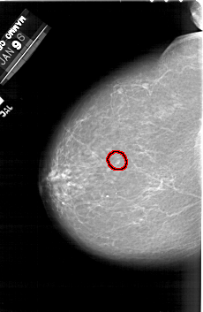 FILE: A_1492_1.LEFT_CC.OVERLAY TOTAL_ABNORMALITIES 1 ABNORMALITY 1 LESION_TYPE CALCIFICATION TYPE PUNCTATE DISTRIBUTION CLUSTERED ASSESSMENT 4 SUBTLETY 3 PATHOLOGY BENIGN TOTAL_OUTLINES 1 BOUNDARY |