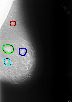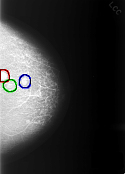 FILE: C_0364_1.LEFT_CC.OVERLAY TOTAL_ABNORMALITIES 3 ABNORMALITY 1 LESION_TYPE MASS SHAPE ROUND MARGINS CIRCUMSCRIBED ASSESSMENT 3 SUBTLETY 5 PATHOLOGY BENIGN TOTAL_OUTLINES 1 BOUNDARY ABNORMALITY 2 LESION_TYPE MASS SHAPE ROUND MARGINS CIRCUMSCRIBED ASSESSMENT 3 SUBTLETY 5 PATHOLOGY BENIGN TOTAL_OUTLINES 1 BOUNDARY ABNORMALITY 3 LESION_TYPE MASS SHAPE LOBULATED MARGINS CIRCUMSCRIBED ASSESSMENT 3 SUBTLETY 5 PATHOLOGY BENIGN TOTAL_OUTLINES 1 BOUNDARY |