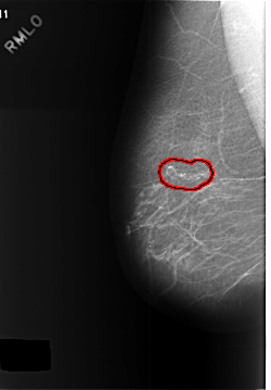 FILE: C_0392_1.RIGHT_MLO.OVERLAY TOTAL_ABNORMALITIES 1 ABNORMALITY 1 LESION_TYPE CALCIFICATION TYPE PLEOMORPHIC DISTRIBUTION SEGMENTAL ASSESSMENT 4 SUBTLETY 5 PATHOLOGY BENIGN TOTAL_OUTLINES 1 BOUNDARY |