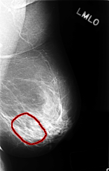 FILE: C_0405_1.LEFT_MLO.OVERLAY TOTAL_ABNORMALITIES 1 ABNORMALITY 1 LESION_TYPE CALCIFICATION TYPE AMORPHOUS DISTRIBUTION SEGMENTAL ASSESSMENT 4 SUBTLETY 1 PATHOLOGY BENIGN TOTAL_OUTLINES 1 BOUNDARY |