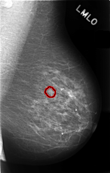 FILE: C_0408_1.LEFT_CC.OVERLAY TOTAL_ABNORMALITIES 1 ABNORMALITY 1 LESION_TYPE CALCIFICATION TYPE AMORPHOUS DISTRIBUTION CLUSTERED ASSESSMENT 4 SUBTLETY 1 PATHOLOGY BENIGN TOTAL_OUTLINES 1 BOUNDARY |