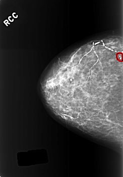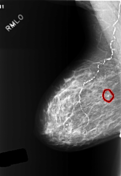 FILE: C_0409_1.RIGHT_MLO.OVERLAY TOTAL_ABNORMALITIES 1 ABNORMALITY 1 LESION_TYPE CALCIFICATION TYPE PLEOMORPHIC DISTRIBUTION CLUSTERED ASSESSMENT 4 SUBTLETY 5 PATHOLOGY BENIGN TOTAL_OUTLINES 1 BOUNDARY |