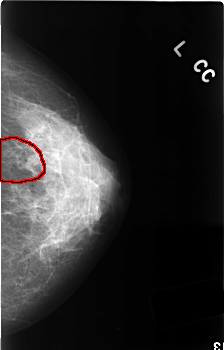 FILE: C_0411_1.LEFT_CC.OVERLAY TOTAL_ABNORMALITIES 1 ABNORMALITY 1 LESION_TYPE CALCIFICATION TYPE PLEOMORPHIC DISTRIBUTION SEGMENTAL ASSESSMENT 4 SUBTLETY 4 PATHOLOGY BENIGN TOTAL_OUTLINES 1 BOUNDARY |