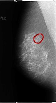 FILE: B_3092_1.RIGHT_MLO.OVERLAY TOTAL_ABNORMALITIES 1 ABNORMALITY 1 LESION_TYPE CALCIFICATION TYPE PLEOMORPHIC DISTRIBUTION CLUSTERED ASSESSMENT 4 SUBTLETY 4 PATHOLOGY BENIGN TOTAL_OUTLINES 1 BOUNDARY |