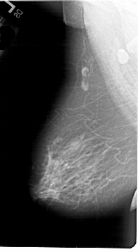 FILE: A_1646_1.RIGHT_MLO.OVERLAY TOTAL_ABNORMALITIES 1 ABNORMALITY 1 LESION_TYPE CALCIFICATION TYPE PLEOMORPHIC DISTRIBUTION CLUSTERED ASSESSMENT 3 SUBTLETY 2 PATHOLOGY BENIGN TOTAL_OUTLINES 1 BOUNDARY |