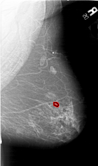 FILE: A_1646_1.RIGHT_CC.OVERLAY TOTAL_ABNORMALITIES 1 ABNORMALITY 1 LESION_TYPE CALCIFICATION TYPE PLEOMORPHIC DISTRIBUTION CLUSTERED ASSESSMENT 3 SUBTLETY 2 PATHOLOGY BENIGN TOTAL_OUTLINES 1 BOUNDARY |