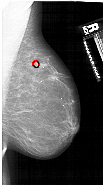 FILE: A_1689_1.RIGHT_CC.OVERLAY TOTAL_ABNORMALITIES 1 ABNORMALITY 1 LESION_TYPE MASS SHAPE OVAL MARGINS CIRCUMSCRIBED ASSESSMENT 4 SUBTLETY 3 PATHOLOGY BENIGN TOTAL_OUTLINES 1 BOUNDARY |