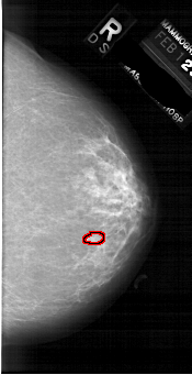 FILE: A_1739_1.RIGHT_CC.OVERLAY TOTAL_ABNORMALITIES 1 ABNORMALITY 1 LESION_TYPE MASS SHAPE LOBULATED MARGINS CIRCUMSCRIBED ASSESSMENT 3 SUBTLETY 1 PATHOLOGY BENIGN TOTAL_OUTLINES 1 BOUNDARY |