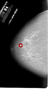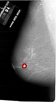 FILE: A_1750_1.LEFT_MLO.OVERLAY TOTAL_ABNORMALITIES 1 ABNORMALITY 1 LESION_TYPE MASS SHAPE ROUND MARGINS CIRCUMSCRIBED ASSESSMENT 3 SUBTLETY 4 PATHOLOGY BENIGN TOTAL_OUTLINES 1 BOUNDARY |