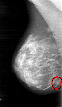 FILE: D_4031_1.RIGHT_CC.OVERLAY TOTAL_ABNORMALITIES 1 ABNORMALITY 1 LESION_TYPE MASS SHAPE OVAL MARGINS OBSCURED ASSESSMENT 0 SUBTLETY 5 PATHOLOGY BENIGN TOTAL_OUTLINES 1 BOUNDARY |