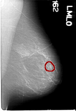 FILE: D_4039_1.LEFT_MLO.OVERLAY TOTAL_ABNORMALITIES 1 ABNORMALITY 1 LESION_TYPE MASS SHAPE OVAL MARGINS OBSCURED ASSESSMENT 0 SUBTLETY 5 PATHOLOGY BENIGN TOTAL_OUTLINES 1 BOUNDARY |