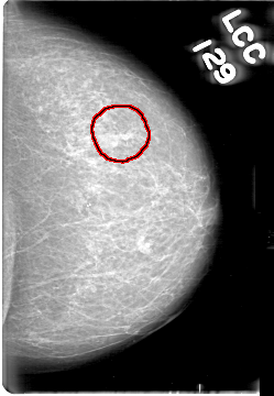 FILE: D_4055_1.LEFT_CC.OVERLAY TOTAL_ABNORMALITIES 1 ABNORMALITY 1 LESION_TYPE MASS SHAPE IRREGULAR MARGINS ILL_DEFINED ASSESSMENT 0 SUBTLETY 3 PATHOLOGY BENIGN TOTAL_OUTLINES 1 BOUNDARY |