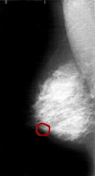 FILE: D_4169_1.RIGHT_MLO.OVERLAY TOTAL_ABNORMALITIES 1 ABNORMALITY 1 LESION_TYPE CALCIFICATION TYPE PUNCTATE DISTRIBUTION CLUSTERED ASSESSMENT 0 SUBTLETY 3 PATHOLOGY BENIGN TOTAL_OUTLINES 1 BOUNDARY |