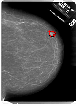 FILE: A_1815_1.RIGHT_CC.OVERLAY TOTAL_ABNORMALITIES 1 ABNORMALITY 1 LESION_TYPE MASS SHAPE TUBULAR MARGINS CIRCUMSCRIBED ASSESSMENT 4 SUBTLETY 4 PATHOLOGY BENIGN TOTAL_OUTLINES 1 BOUNDARY |