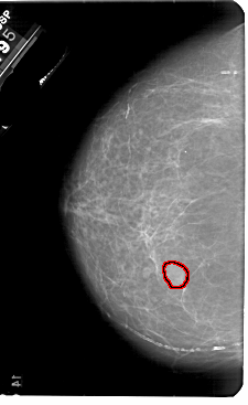 FILE: A_1836_1.LEFT_CC.OVERLAY TOTAL_ABNORMALITIES 1 ABNORMALITY 1 LESION_TYPE MASS SHAPE OVAL MARGINS OBSCURED ASSESSMENT 3 SUBTLETY 5 PATHOLOGY BENIGN TOTAL_OUTLINES 1 BOUNDARY |