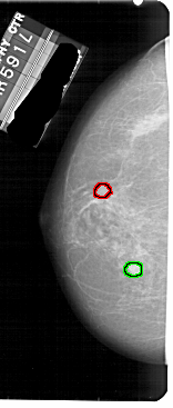 FILE: A_1853_1.LEFT_CC.OVERLAY TOTAL_ABNORMALITIES 1 ABNORMALITY 1 LESION_TYPE MASS SHAPE OVAL MARGINS OBSCURED ASSESSMENT 4 SUBTLETY 3 PATHOLOGY BENIGN TOTAL_OUTLINES 1 BOUNDARY ABNORMALITY 2 LESION_TYPE MASS SHAPE ROUND MARGINS CIRCUMSCRIBED ASSESSMENT 2 SUBTLETY 4 PATHOLOGY BENIGN_WITHOUT_CALLBACK TOTAL_OUTLINES 1 BOUNDARY |