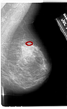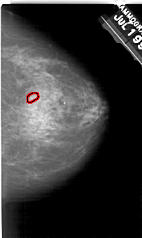 FILE: A_1944_1.RIGHT_CC.OVERLAY TOTAL_ABNORMALITIES 1 ABNORMALITY 1 LESION_TYPE CALCIFICATION TYPE PLEOMORPHIC DISTRIBUTION CLUSTERED ASSESSMENT 4 SUBTLETY 3 PATHOLOGY BENIGN TOTAL_OUTLINES 1 BOUNDARY |