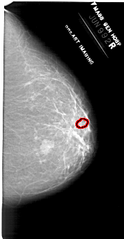 FILE: A_1953_1.RIGHT_MLO.OVERLAY TOTAL_ABNORMALITIES 1 ABNORMALITY 1 LESION_TYPE CALCIFICATION TYPE PLEOMORPHIC DISTRIBUTION CLUSTERED ASSESSMENT 4 SUBTLETY 1 PATHOLOGY BENIGN TOTAL_OUTLINES 1 BOUNDARY |