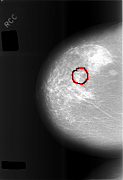 FILE: C_0479_1.RIGHT_CC.OVERLAY TOTAL_ABNORMALITIES 1 ABNORMALITY 1 LESION_TYPE MASS SHAPE OVAL MARGINS CIRCUMSCRIBED ASSESSMENT 3 SUBTLETY 5 PATHOLOGY BENIGN TOTAL_OUTLINES 1 BOUNDARY |