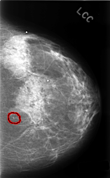 FILE: C_0492_1.LEFT_CC.OVERLAY TOTAL_ABNORMALITIES 1 ABNORMALITY 1 LESION_TYPE CALCIFICATION TYPE PLEOMORPHIC DISTRIBUTION CLUSTERED ASSESSMENT 4 SUBTLETY 5 PATHOLOGY BENIGN TOTAL_OUTLINES 1 BOUNDARY |