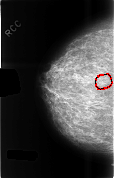 FILE: C_0493_1.RIGHT_MLO.OVERLAY TOTAL_ABNORMALITIES 1 ABNORMALITY 1 LESION_TYPE CALCIFICATION TYPE AMORPHOUS DISTRIBUTION CLUSTERED ASSESSMENT 4 SUBTLETY 2 PATHOLOGY BENIGN TOTAL_OUTLINES 1 BOUNDARY |