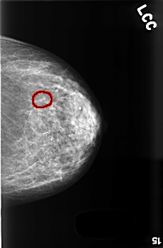 FILE: C_0511_1.LEFT_CC.OVERLAY TOTAL_ABNORMALITIES 1 ABNORMALITY 1 LESION_TYPE CALCIFICATION TYPE PLEOMORPHIC DISTRIBUTION CLUSTERED ASSESSMENT 4 SUBTLETY 3 PATHOLOGY BENIGN TOTAL_OUTLINES 1 BOUNDARY |