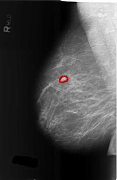 FILE: B_3432_1.RIGHT_MLO.OVERLAY TOTAL_ABNORMALITIES 1 ABNORMALITY 1 LESION_TYPE MASS SHAPE LOBULATED MARGINS CIRCUMSCRIBED-OBSCURED ASSESSMENT 4 SUBTLETY 4 PATHOLOGY BENIGN TOTAL_OUTLINES 1 BOUNDARY |
