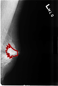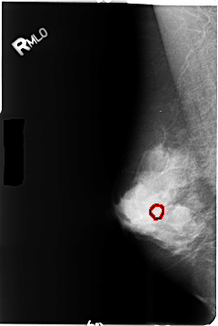 FILE: B_3480_1.RIGHT_MLO.OVERLAY TOTAL_ABNORMALITIES 1 ABNORMALITY 1 LESION_TYPE CALCIFICATION TYPE PLEOMORPHIC DISTRIBUTION CLUSTERED ASSESSMENT 4 SUBTLETY 3 PATHOLOGY BENIGN TOTAL_OUTLINES 1 BOUNDARY |
