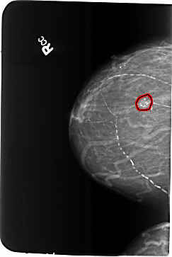 FILE: B_3481_1.RIGHT_MLO.OVERLAY TOTAL_ABNORMALITIES 1 ABNORMALITY 1 LESION_TYPE CALCIFICATION TYPE COARSE-PLEOMORPHIC DISTRIBUTION CLUSTERED ASSESSMENT 2 SUBTLETY 5 PATHOLOGY BENIGN TOTAL_OUTLINES 1 BOUNDARY |