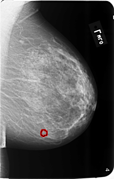 FILE: B_3493_1.LEFT_CC.OVERLAY TOTAL_ABNORMALITIES 1 ABNORMALITY 1 LESION_TYPE CALCIFICATION TYPE PLEOMORPHIC DISTRIBUTION CLUSTERED ASSESSMENT 4 SUBTLETY 3 PATHOLOGY BENIGN TOTAL_OUTLINES 1 BOUNDARY |