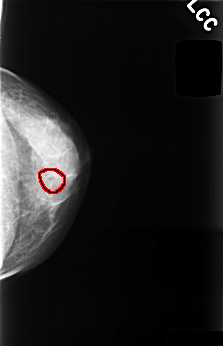 FILE: C_0477_1.LEFT_MLO.OVERLAY TOTAL_ABNORMALITIES 1 ABNORMALITY 1 LESION_TYPE CALCIFICATION TYPE PUNCTATE DISTRIBUTION CLUSTERED ASSESSMENT 4 SUBTLETY 3 PATHOLOGY BENIGN TOTAL_OUTLINES 1 BOUNDARY |