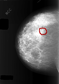 FILE: C_0484_1.RIGHT_CC.OVERLAY TOTAL_ABNORMALITIES 1 ABNORMALITY 1 LESION_TYPE MASS SHAPE LOBULATED MARGINS CIRCUMSCRIBED ASSESSMENT 3 SUBTLETY 4 PATHOLOGY BENIGN TOTAL_OUTLINES 1 BOUNDARY |
