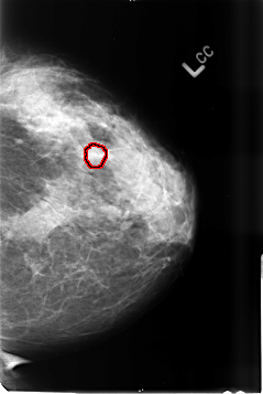 FILE: B_3456_1.LEFT_CC.OVERLAY TOTAL_ABNORMALITIES 1 ABNORMALITY 1 LESION_TYPE CALCIFICATION TYPE PLEOMORPHIC DISTRIBUTION CLUSTERED ASSESSMENT 4 SUBTLETY 3 PATHOLOGY BENIGN TOTAL_OUTLINES 1 BOUNDARY |