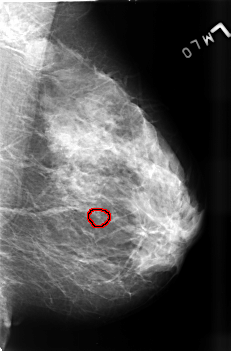 FILE: B_3456_1.LEFT_MLO.OVERLAY TOTAL_ABNORMALITIES 1 ABNORMALITY 1 LESION_TYPE CALCIFICATION TYPE PLEOMORPHIC DISTRIBUTION CLUSTERED ASSESSMENT 4 SUBTLETY 3 PATHOLOGY BENIGN TOTAL_OUTLINES 1 BOUNDARY |