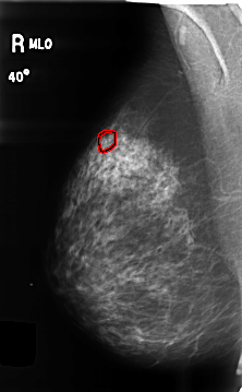 FILE: B_3459_1.RIGHT_MLO.OVERLAY TOTAL_ABNORMALITIES 1 ABNORMALITY 1 LESION_TYPE CALCIFICATION TYPE PLEOMORPHIC DISTRIBUTION CLUSTERED ASSESSMENT 4 SUBTLETY 4 PATHOLOGY BENIGN TOTAL_OUTLINES 1 BOUNDARY |