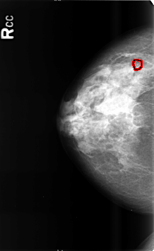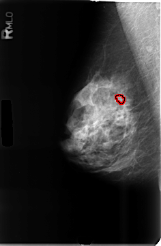 FILE: B_3464_1.RIGHT_MLO.OVERLAY TOTAL_ABNORMALITIES 1 ABNORMALITY 1 LESION_TYPE CALCIFICATION TYPE AMORPHOUS DISTRIBUTION CLUSTERED ASSESSMENT 3 SUBTLETY 3 PATHOLOGY BENIGN TOTAL_OUTLINES 1 BOUNDARY |