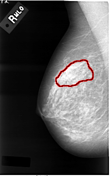 FILE: C_0001_1.RIGHT_MLO.OVERLAY TOTAL_ABNORMALITIES 1 ABNORMALITY 1 LESION_TYPE MASS SHAPE IRREGULAR MARGINS ILL_DEFINED ASSESSMENT 4 SUBTLETY 3 PATHOLOGY MALIGNANT TOTAL_OUTLINES 1 BOUNDARY |
